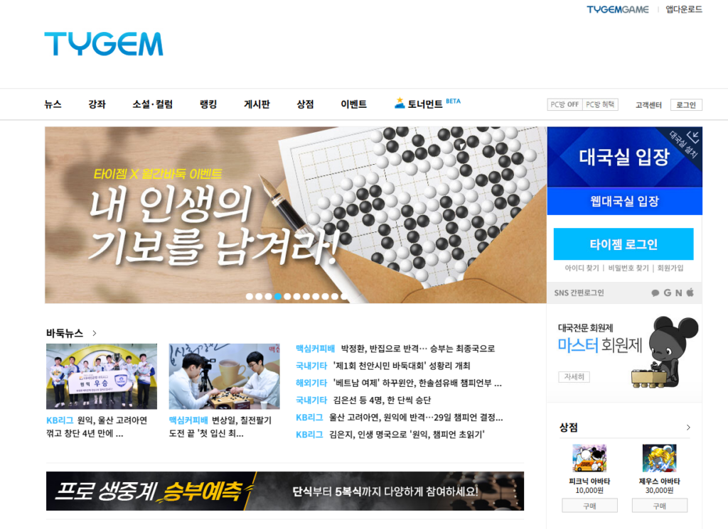 전연령 유저가 함께하는 대국과 생중계의 재미, 타이젬 바둑&오목